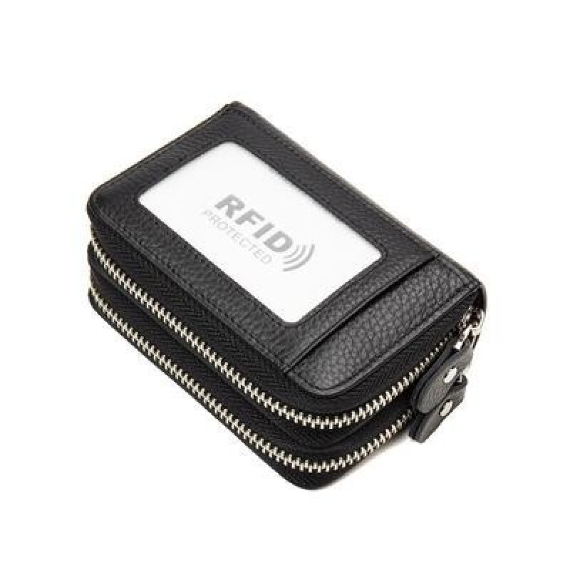 RFID Блокировка Мода Женщины Держатель карты Подлинная кожа Двойная молния Большая емкость Женский к