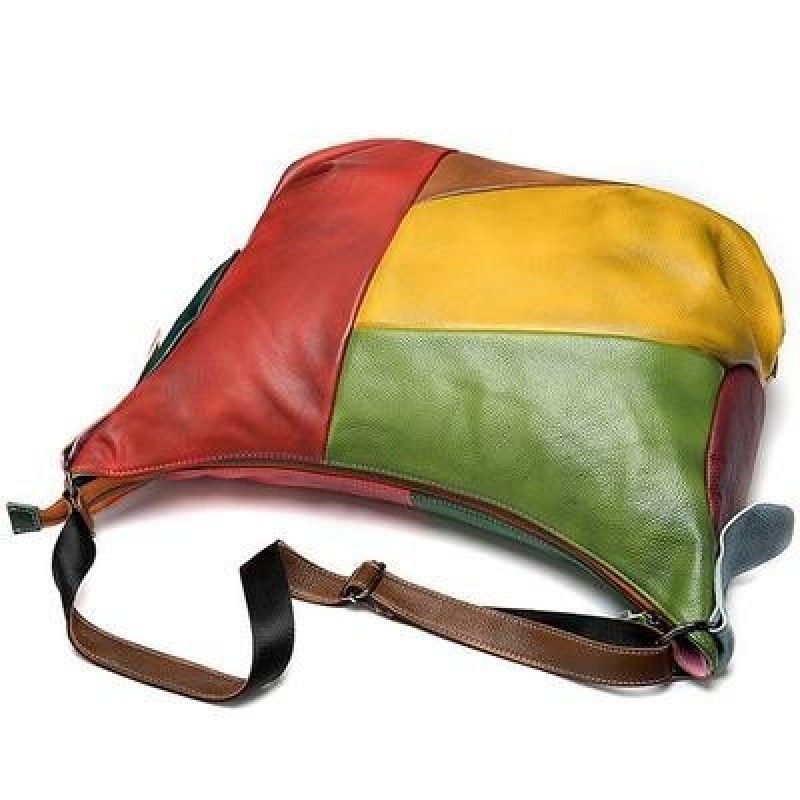 Подлинная кожа Женщины Hobos Сумка Ручная работа Винтаж Стиль Пэчворк Настоящая кожа Покупатель Сумк