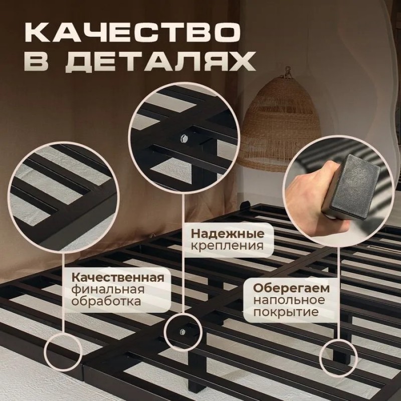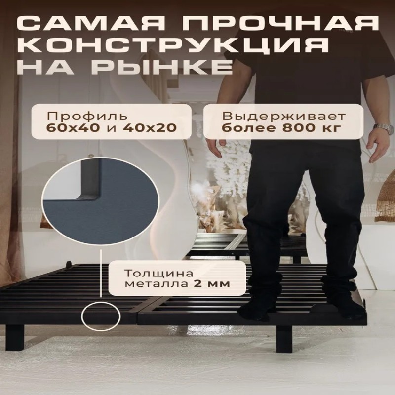 Парящая кровать на металлокаркасеМеталлический каркас это основа надежности всего изделия из металлического профиля 40Х40мм. Компактен при транспортировке. Полимерное покрытие. Оснащен всем необходимым для обвеса царгами и изголовьем. Доставка осуществляется по всей России до заказчика. Каркас упакован и укомплектован.